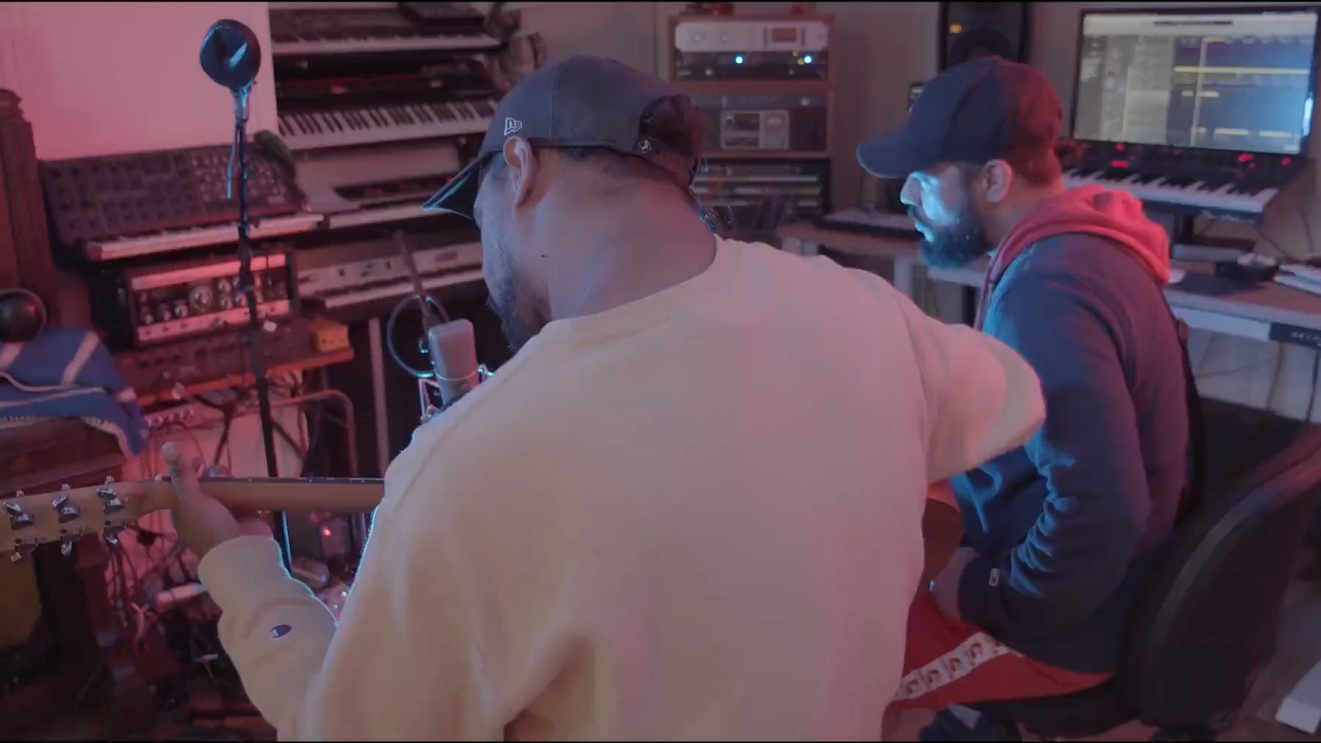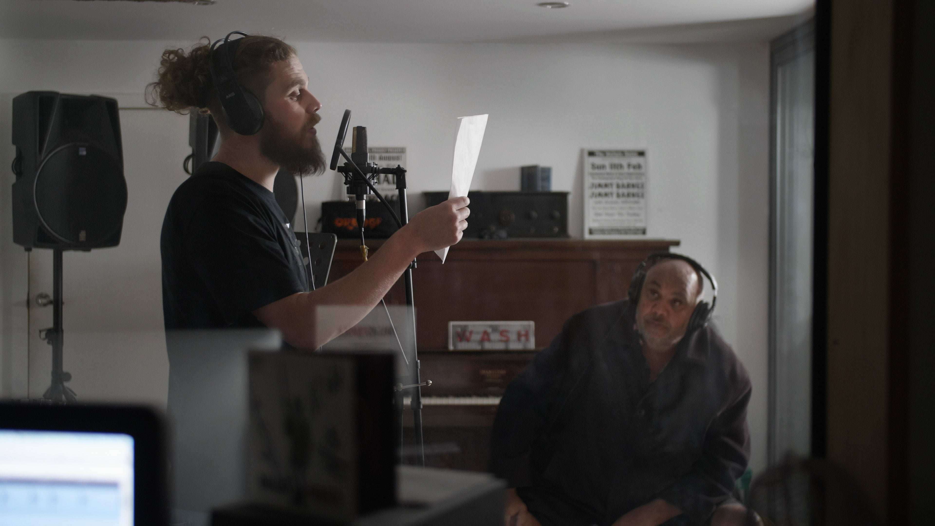 Yung Warriors in the studio remaking Big River written by Uncle Selwyn Burns.